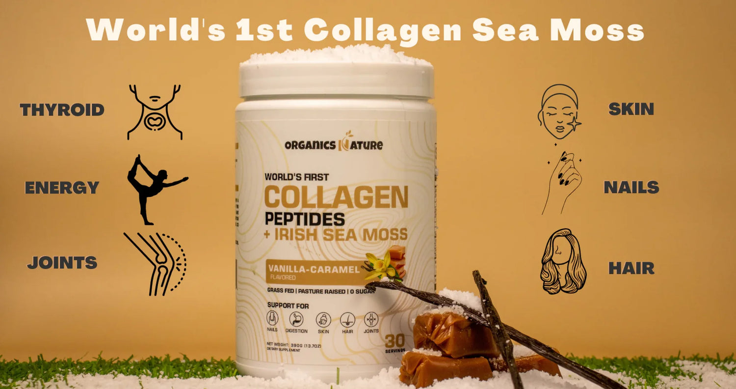 Supports gut health, reduces inflammation, and aids conditions such as IBS, ulcers, and leaky gut with the combined benefits of collagen and Irish Sea Moss